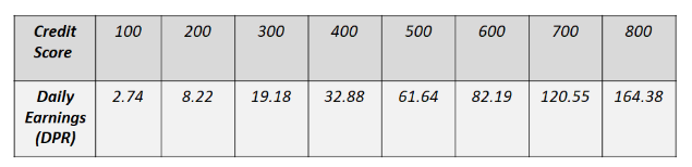 스테이킹 후 credit score가 쌓이면 점점 채굴량은 늘어납니다.