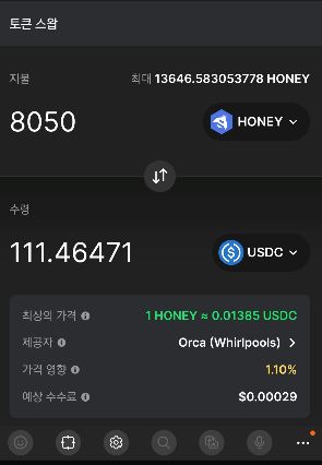 약 8천 개의 HONEY 토큰이 채굴되었고 스왑한 결과 $111 약 14만원 정도 REWARD 받았습니다.