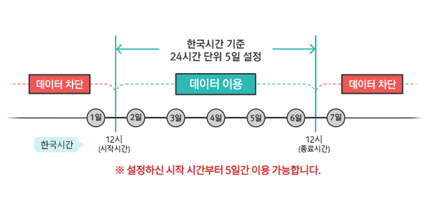 - 자동형 : 한국시간 기준 데이터를 이용할 시작일시 지정 (이후에는 해외 출국 시 자동 적용)
