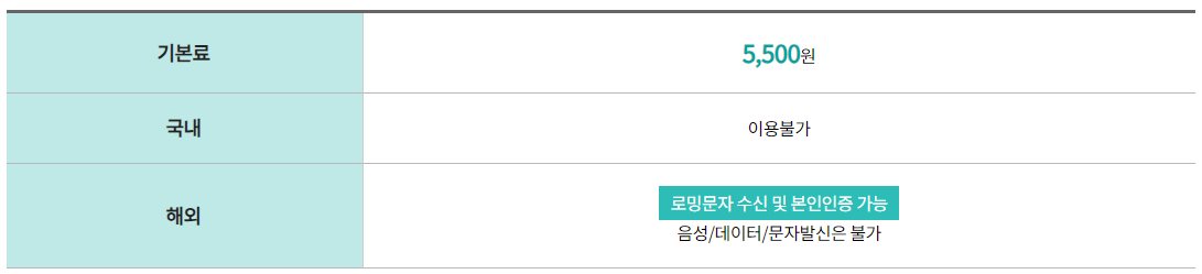 아래 요금제 사용자들은 무료로 데이터 로밍이 사용가능합니다.