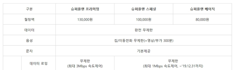 3. 5G 초이스, 슈퍼플랜 프리미엄 요금제 사용자