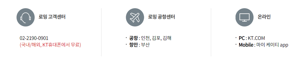 전화, 모바일앱, PC 사이트 및 공항 로밍센터 이용 가능합니다.
