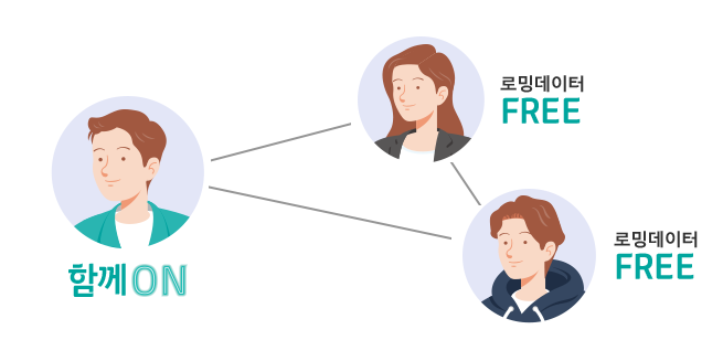 | 1. 로밍을 신청안해도 자동으로 적용되는 기능 2. 로밍상품 A. 데이터 함께ON 아시아/미주 B. 데이터 함께ON 글로벌 C. 하루 종일 ON D. 기가팩 중일(중국, 일본) 3. 5G 초이스, 슈퍼플랜 요금제 사용자 4. 장기 체류 고객 5. 가입 채널 6. 로밍 센터 위치 |