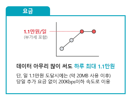 이용방법 그대로 전 세계181개국에서 아무리 많이 써도 하루 최대 1.1만원만 부과됩니다.