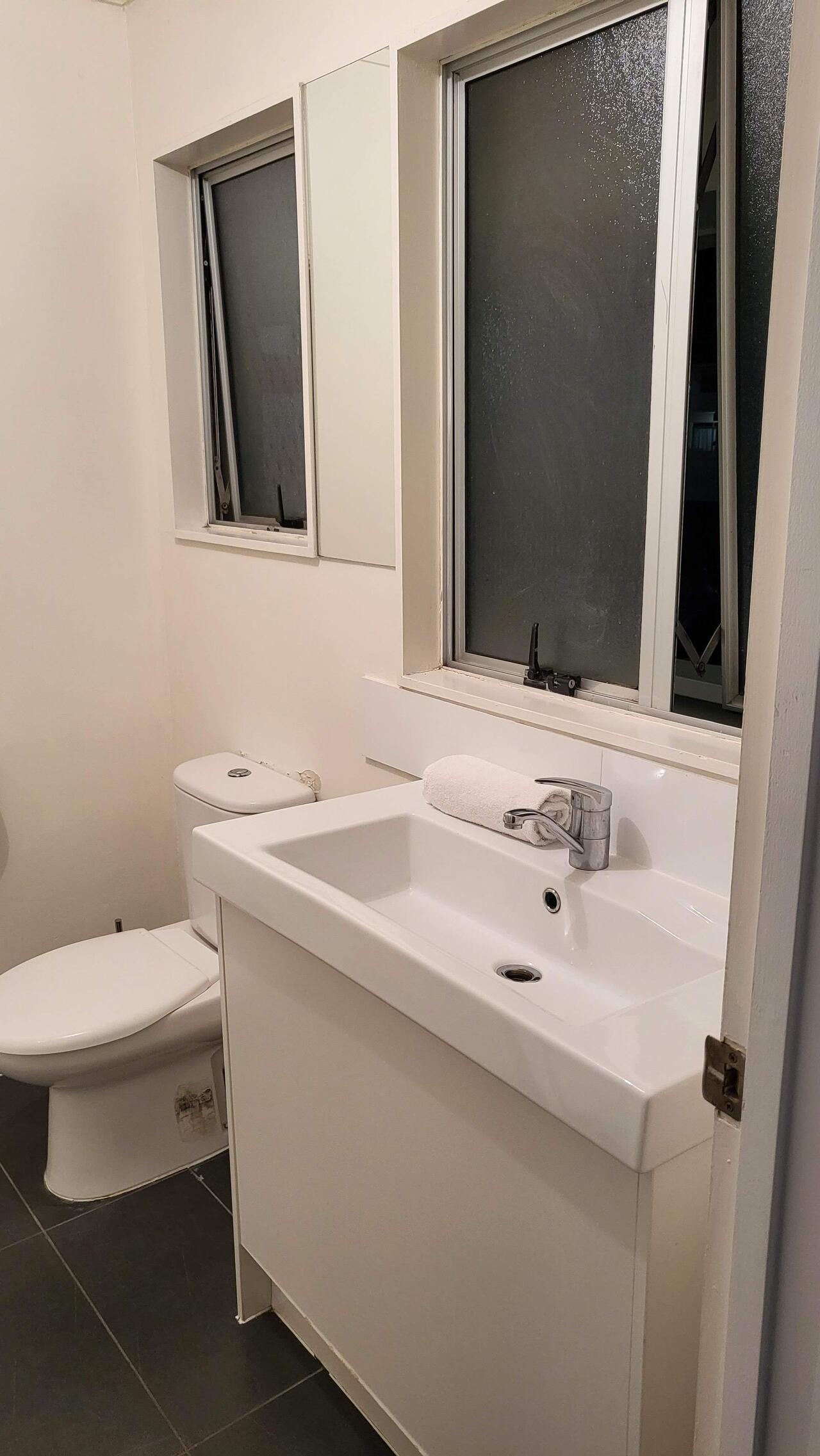 Our reserved room had one single bed and a bunk bed with a private bathroom. We made our reservation through Booking.com. The room conditions were decent, and you can rent towels at the check-in area.