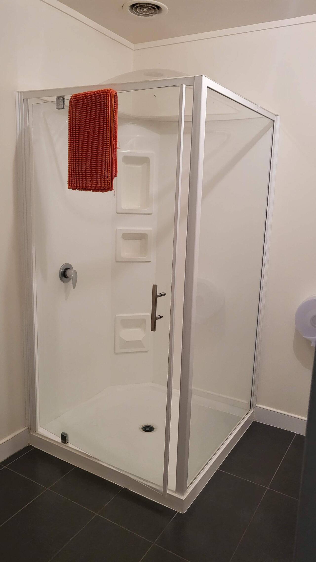 The shared kitchen is right next to the check-in area, and you can store your groceries in the kitchen refrigerator.