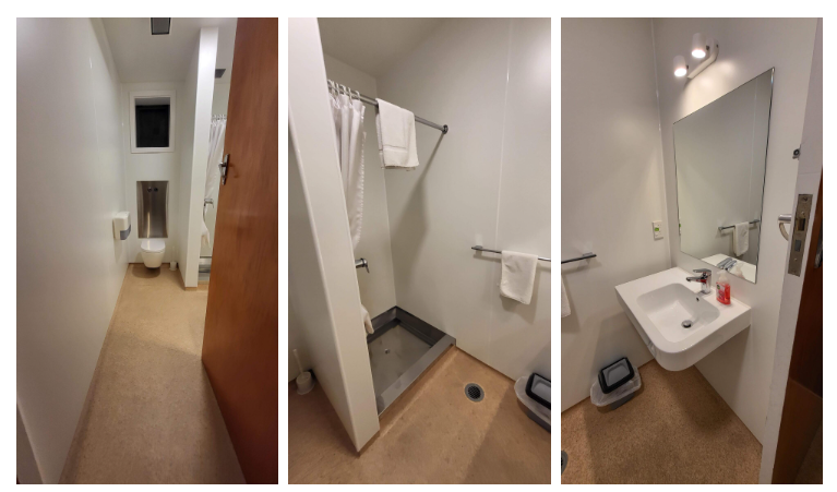 The room we reserved had one double bed and two single beds with a private bathroom. We made our reservation through Booking.com. The bathroom conditions were satisfactory, and there was sufficient hot water and water pressure.