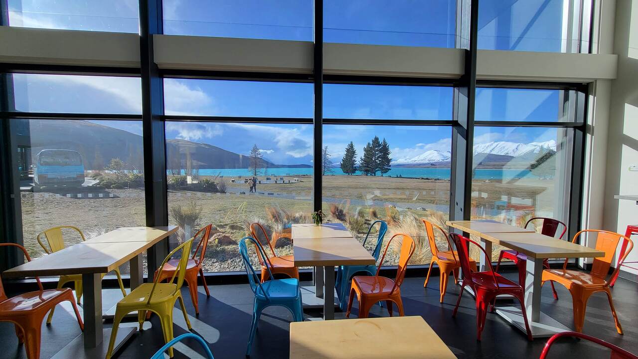 Tekapo YHA is in an excellent location right in front of Lake Tekapo. It's situated in the heart of Tekapo with the lake in the front, a 4 Square Mart on the left, and the Church of the Good Shepherd on the right.