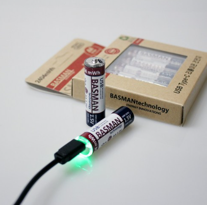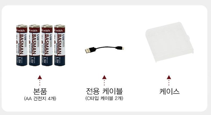 바스맨 C타입 충전식 건전지 리튬이온 배터리 AA 4개입 (1650mAh) 1개